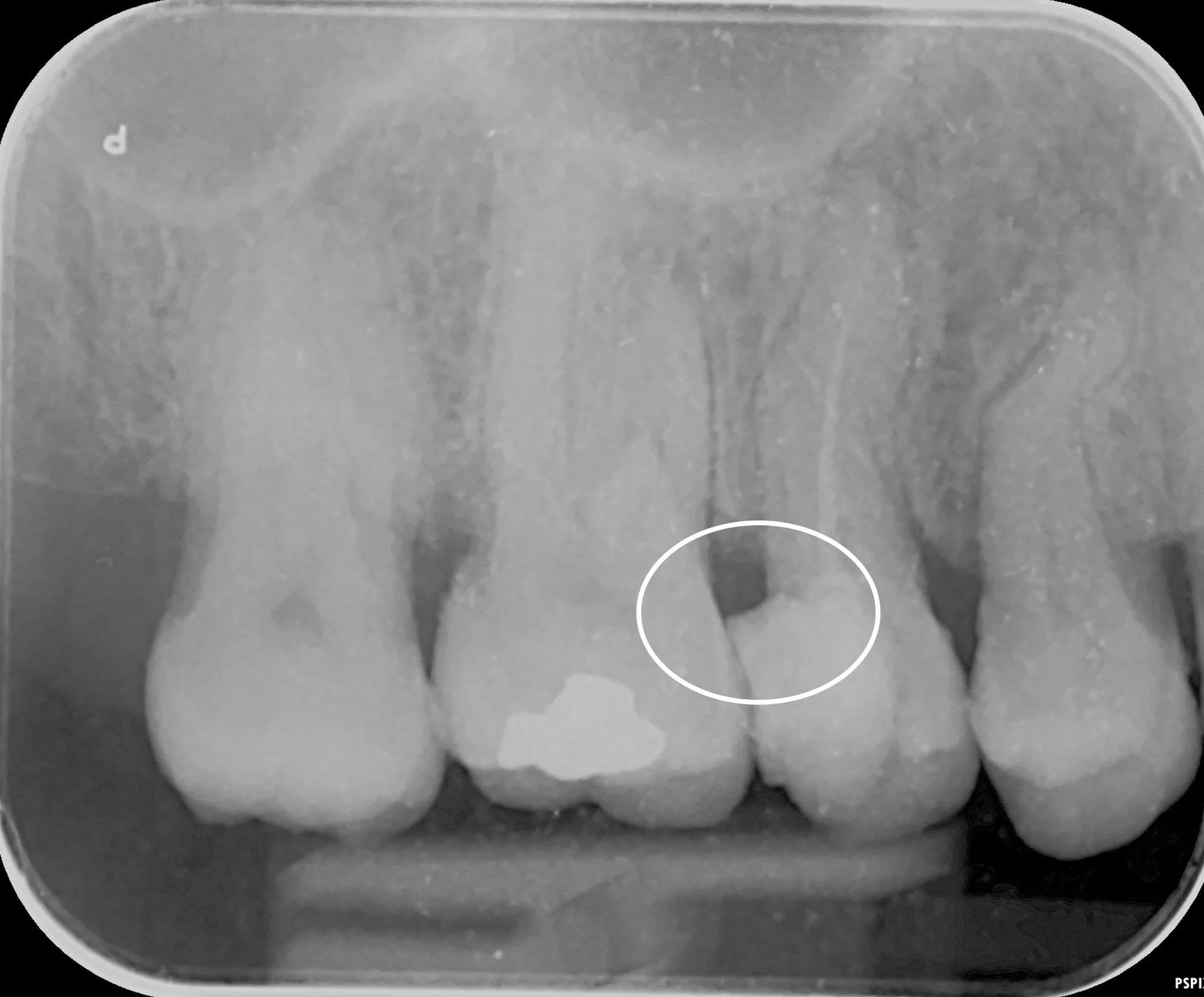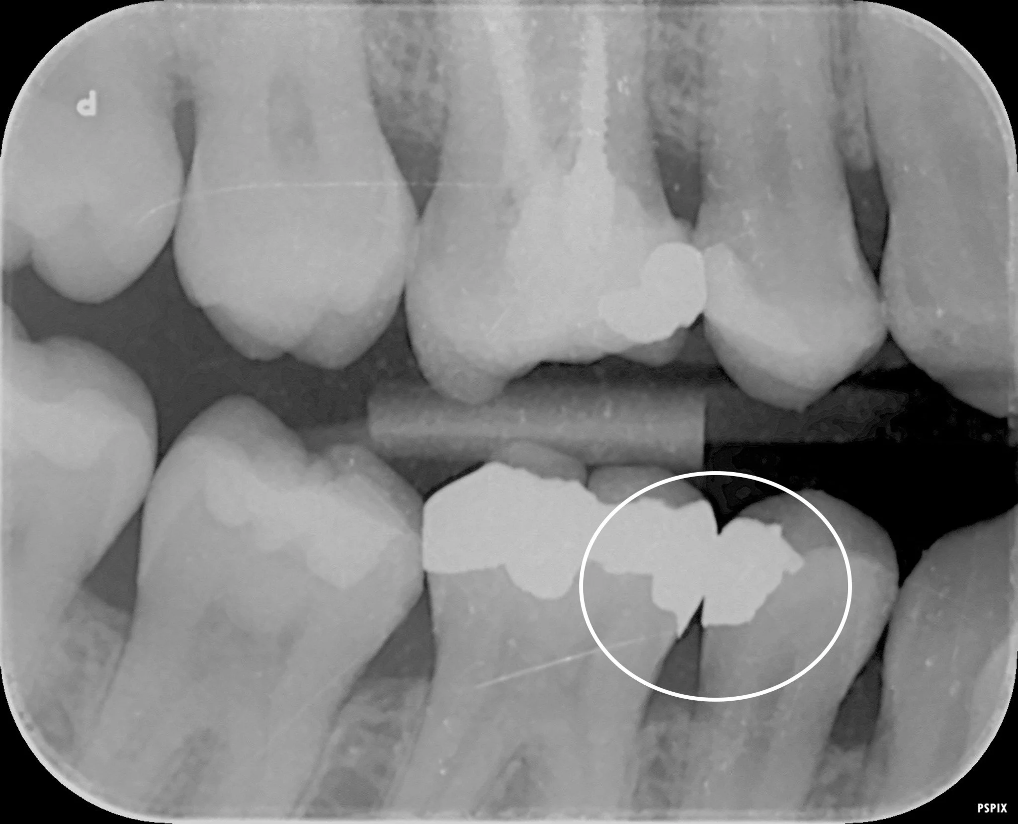 The margin of the filling here is stained and visible